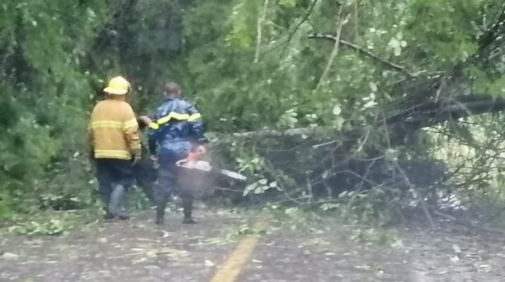 El personal en conjunto realizan labores para retirar y talar árboles caídos por los vientos, de igual forma se resguardó a dos mujeres y dos familias a un albergue, esto por afectaciones en sus hogares.