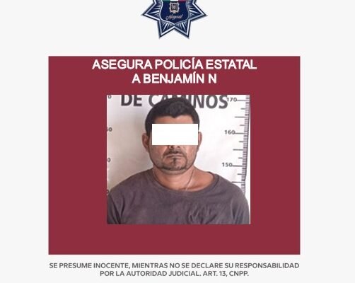 Tepic.-Elementos de la Policía Estatal preventiva lograron la detención de una persona del sexo masculino de nombre Benjamín “N” “N”, de 39 años, asegurándole una bolsa de plástico transparente conteniendo en el interior un vegetal verde y seo con las características propias de la marihuana, una pistola tipo escuadra calibre 9 milímetros, de la marca Pietro Beretta, tipo 92 FS, y se presume qué esta persona se encuentra relacionada en el delito de homicidio calificado en agravio de una persona del sexo masculino.