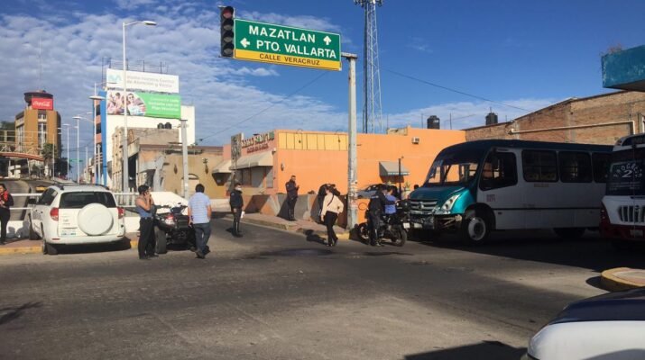 Sobre los hechos, al circular por calle Veracruz de norte a sur un camión urbano de la ruta Mololoa y al llegar al cruce con la avenida Insurgentes colisiona con una camioneta de color blanco de la marca Toyota que circulaba por Insurgentes de oriente a poniente la cual al impacto fue proyectada contra la banqueta de nodo.