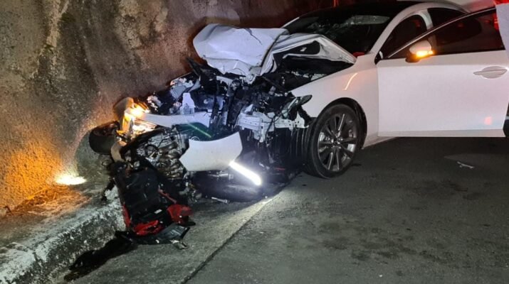 San Blas. -El sábado por la tarde en el tramo de la autopista Tepic-Matanchén kilómetro 10 se reportó un choque de una motocicleta y un vehículo que dejó como saldo una persona sin vida, otra persona asegurada y cuantiosos daños materiales. Según versiones en el lugar cuando momento antes por dicho tramo carretero circulaba un vehículo de la marca Mazda de color blanco, al parecer conducido por una mujer en sentido a la ciudad de Tepic y al llegar al lugar antes mencionado invade carril contrario provocando el choque contra la motocicleta, que se circulaba en sentido San Blas, el cual debido al impacto el motociclista pierde la vida en el lugar tratándose de un hombre de 54 a 60 años de años de edad, identificado con el nombre de Ismael “N” quien quedó a 30 metros aproximada ente del impacto, en el lugar la conducta del automóvil fue asegurada quien al parecer presentó aliento alcohólico, quedando a disposición de la autoridad correspondiente.