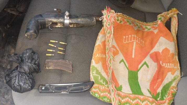 Al observar los elementos le solicitan se detenga a través de los comando verbales, a su revisión se le encontró con posesión de una bolsa al interior con un vegetal verde y seco con las características propias de la droga conocida como marihuana y una pistola hechiza del calibre 0.22 milímetros.
