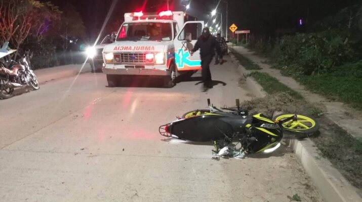 Tecuala. -En la noche madrugada del miércoles por el tramo carretero de Atotonilco a Tecuala se registró un hecho de tránsito, donde un motociclista derrapa sobre el camino mismo que resultó lesionado, acudiendo al lugar personal de Bomberos voluntarios de Tecuala quienes lo trasladaron a un hospital en Acaponeta para su atención médica correspondiente, quien presenta posible fractura de fémur izquierdo y golpes contusos, tomando conocimiento elementos de seguridad pública.