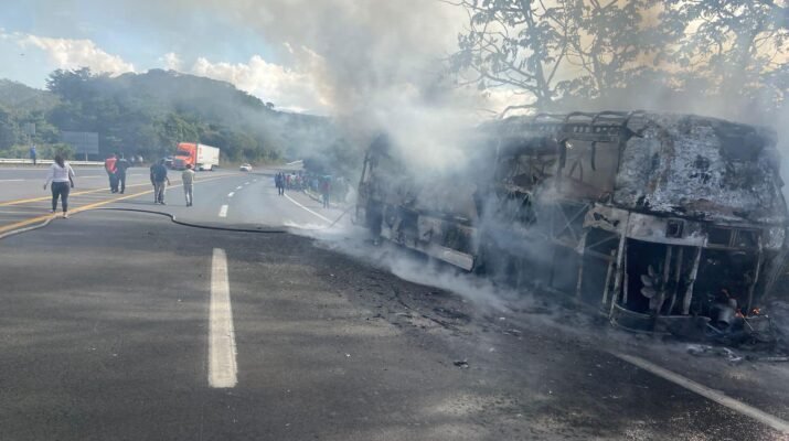 La tarde del miércoles se reportó a la línea de emergencias 911, un incendio de autobús en la carretera de cuota Tepic – Mazatlán, a la altura del kilómetro 18.