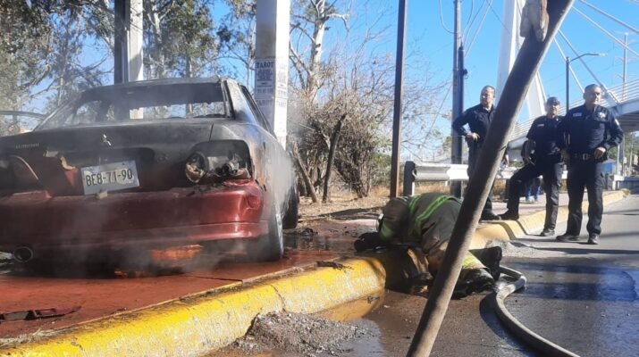 En atención a un reporte recibido a la línea de emergencias 911, donde se mencionará un incendio de vehículo, en el bulevar Tepic – Xalisco.