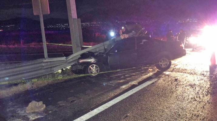 Tratándose de un vehículo de la marca Toyota tipo Camry con matrículas extranjeras del estado de California, el cual al llegar dicho lugar su conductor pierde el control y choca contra la barrera metálica, donde dos personas resultaron lesionadas atendidas por personal de la Cruz Roja y de la ambulancia AMEC traslada a uno de ellos a un hospital para su valoración médica. Mientras que en el lugar dos personas resultaron sin vida.