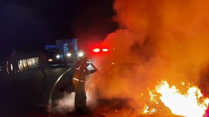 La persona conductora, mencionó que iba conduciendo cuando comenzó a ver fuego en la parte delantera del vehículo, razón por la cual perdió el control, invadiendo el bordo de carretera, al ver que ya no podía extinguir el incendio pidió auxilio.