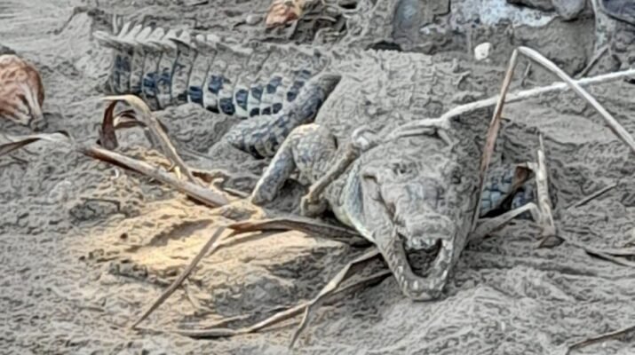 En atención a un reporte recibido a la línea de emergencias 9-1-1, donde se mencionara un cocodrilo en el poblado de Aticama, a un costado del Puente.