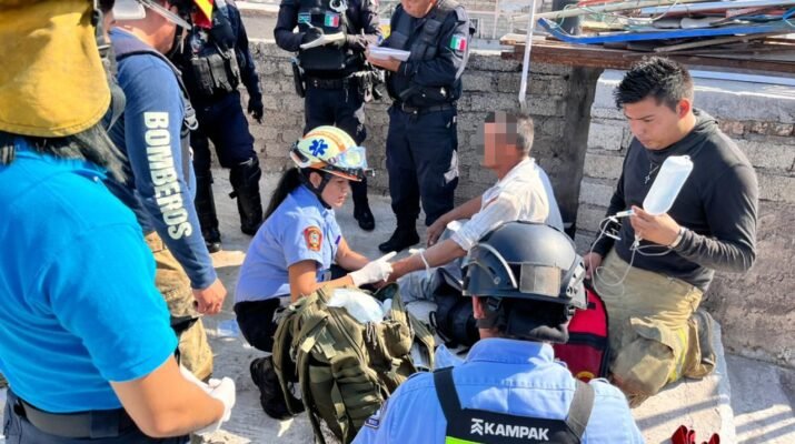 Inmediatamente, el personal paramédico lo inspeccionó, presentando lesiones en codo derecho y pie derecho, así como un hematoma en la región occitoparietal, siendo atendido y empaquetado en el lugar, para posteriormente ser trasladado a urgencias médicas.