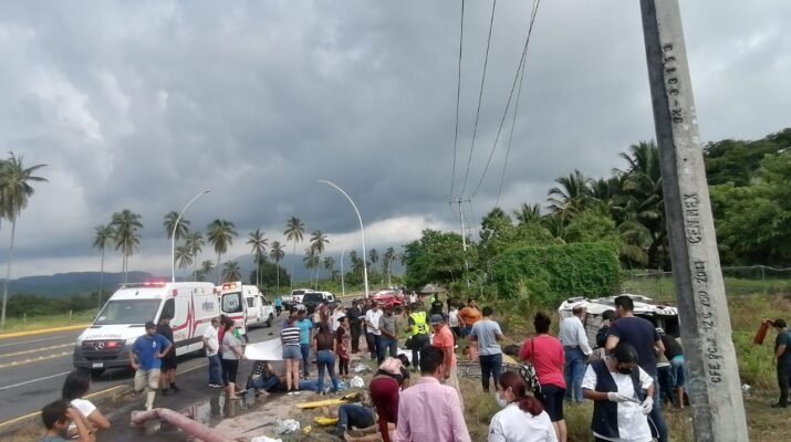 Volcadura de combi de pasajeros en el municipio de San Blas