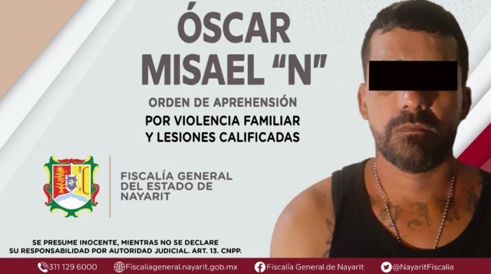 Fue ejecutada una orden de aprehensión en el municipio de Compostela contra Óscar Misael “N”, por su presuntiva responsabilidad penal en hechos que la ley califica como delito de violencia familiar y lesiones calificadas, cometido en agravio de una persona de sexo femenino de identidad reservada.