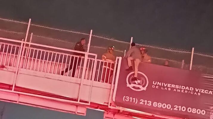 Luego de dos horas de diálogo, la persona no accedió a los intentos de ayuda, mismo que se cuelga con sus manos por la parte exterior del puente, quedando suspendido de un espectacular, de inmediato, los Bomberos de Nayarit colocaron el camión motobomba en la parte inferior y con el apoyo de una escalera logran poner a salvo al masculino de 35 años de edad.