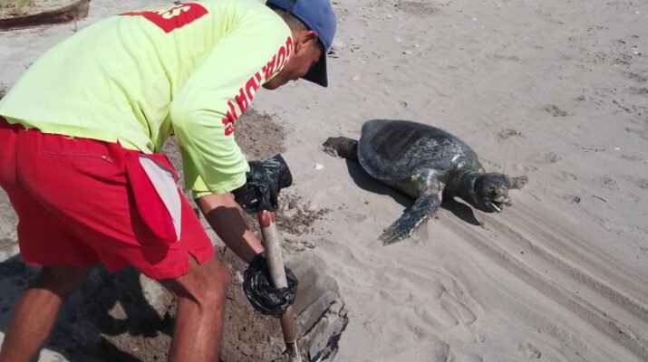 En atención a un reporte ciudadano, donde se mencionara el avistamiento de una tortuga muerta en la playa Bahía de Matanchén del municipio de San Blas.