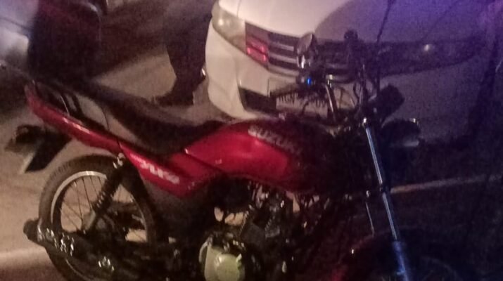 Por la calle Zacatecas entre Insurgentes y calle Miñon de la Zona Centro de esta ciudad, fue localizada y asegurada una motocicleta en estado de abandono, tratándose de la marca Suzuki de color roja con placa de circulación 84-PF-Z4, la cual desde el pasado viernes fue abandonada en el lugar, siendo asegurada y puesta a disposición de la autoridad correspondiente.