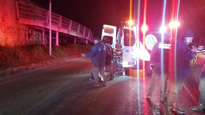 Los hechos cuando por dicho tramo carretero en sentido al oriente circulaba una motocicleta de color negro con rojo conducida por Jonathan Saúl “N” de 24 años de edad. El cual pierde el control de la motocicleta derrapando contra la cinta asfáltica y resultando lesionado, siendo atendido por personal de la Unidad Médica Táctica de la Policía Estatal, quiénes lo trasladaron a un hospital para su atención médica correspondiente, presentando golpes en distintas partes del cuerpo, así como heridas cortantes en rostro y un hematoma a la altura del ojo izquierdo.