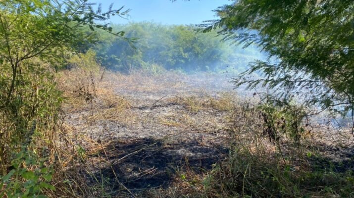 En atención a un reporte recibido a la línea de emergencias 9-1-1, donde se mencionara un incendio de lote baldío junto a la escuela primaria de la localidad de Mezcales del municipio de Bahía de Banderas.