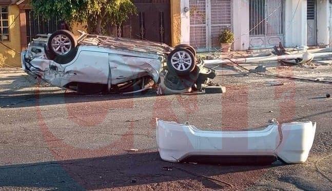 Personal de Protección Ciudadana y Bomberos, toman conocimiento del hecho y se dirigen al lugar señalado, dónde se encontró un vehículo de la marca Nissan, submarca Versa, en color blanco, el cual, se impactó contra dos postes de la CFE ocasionando su volcadura.