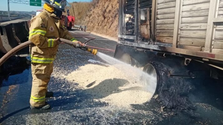 En atención a un reporte recibido a la línea de emergencias 911, dónde se solicitará apoyo para apagar un tracto camión que se encontrara incendiándose en la autopista Jala – Compostela, donde el kilómetro 54.