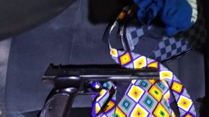 Siendo asegurado un masculino de nombre Ulises N, de 28 años, mismo que se encontraba aparentemente en estado de ebriedad, identificando a la vista al interior del vehículo un arma de fuego tipo escuadra, calibre.22 milímetros, con ocho (8) cartuchos útiles al calibre y un vehículo en color negro de la marca conocida como Kia, sub marca Rio, modelo 2019.