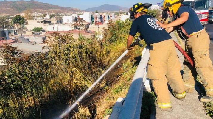 El Gobierno del Estado a través de los Bomberos de Nayarit atienden de manera oportuna el reporte de un incendio de pastizal en la avenida Insurgentes, esquina con calle Ixtlán, de la colonia Infonavit Los Fresnos de Tepic, como referencia frente a la tienda departamental conocida como The Home Depot.