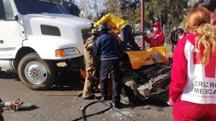 A la brevedad, con el uso de la herramienta hidráulica “quijadas de la vida” conocida como “Ram” se procedió a levantar la parte delantera del trailer que se encontraba aplastando el taxi, una vez que fue elevada se procedió a cortar el techo del vehículo logrando de esta forma liberar al masculino, el cual, fue colocado en una cama rígida de traslado donde recibió atención prehospitalaria por parte del personal de la Cruz Roja, sin presentar aparentes lesiones de gravedad para finalmente ser trasladado a urgencias médicas.
