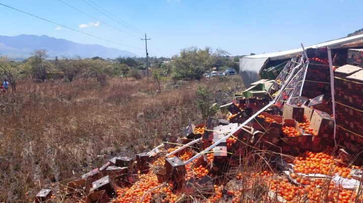 En el reporte, mencionaron una volcadura de un camión de carga que transportará jitomate de Guasave a Toluca, dónde el conductor perdiera el control saliendo de la cinta asfáltica y cayendo sobre su lado derecho. Al lugar arribaron elementos de la Unidad Médica Táctica y Ángeles Nayaritas para prestar apoyo.