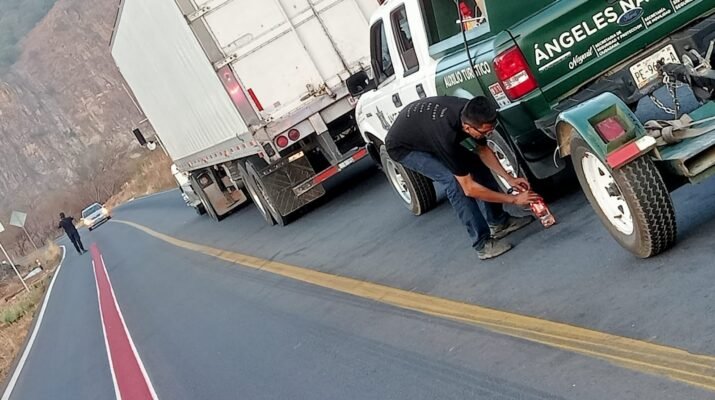 La Secretaría de Seguridad y Protección Ciudadana a través Ángeles Nayaritas brinda de manera oportuna asistencia mecánica a un tráiler y tractocamión varados en la carretera Federal 15.