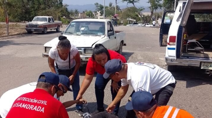 Arribando al lugar personal de Protección Ciudadano de Rosamorada y de la Comisión Nacional de Emergencias delegación Rosamorada, mismos que trasladaron a una mujer y un masculino al IMSS Bienestar en Tuxpan para su atención médica correspondiente, tratándose de madre e hijo.