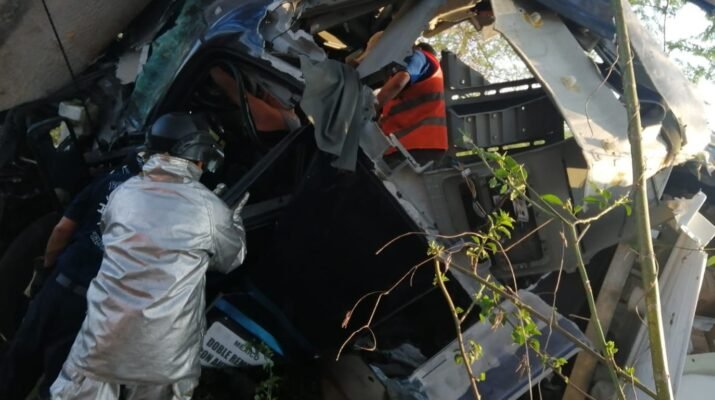 Dónde se encontró un trailer impactado contra un árbol ubicado fuera de la cinta asfáltica, al interior del trailer se encontraba atorada una persona del sexo masculino, por lo que se procedió a utilizar la herramienta hidráulica conocida como “quijadas de la vida” para cortar la puerta del trailer y lograr extraer a la persona.