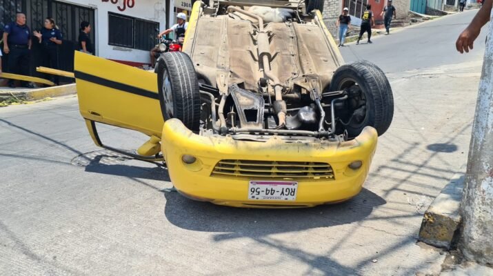 La tarde del domingo se reportó a la línea de emergencias un hecho de tránsito por la calle Iztapalapa y Pirámide de Monte Albán de la zona Colonia Ruinas de Jauja en esta ciudad. Cuándo un momento antes circulaba por dicha por dicha calle un vehículo de la marca Matiz color amarillo en la subida cuando al parecer su conductora realiza una maniobra lo que provoca perder el control, maniobrando de manera forzada en reversa hasta perder el control y al parecer sufre una falla mecánica en los frenos, chocando contra machuelo de una banqueta y terminado volcado sobre su capacete “llantas para arriba” que dejó como saldo dos personas lesionadas una auxiliada llevada al hospital por personal de la Cruz Roja y otra llevada en vehículo particular a una hospital, policía Vial se encargó del reporte correspondientes del hecho de tránsito.