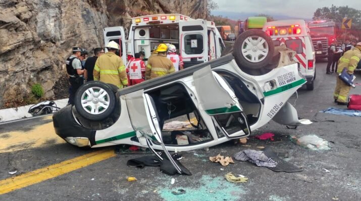 Al interior del taxi viajaban cinco (5) personas, de las cuales dos (2) ya habían sido trasladadas por personal de Protección Civil del municipio de Santa María del Oro, una persona más se encontraba sobre la cinta asfáltica siendo atendida por personal de la Cruz Roja y al interior del vehículo se encontraban dos (2) personas prensadas, mismas que fueron rescatadas por los Bomberos de Nayarit con el uso de la herramienta hidráulica.