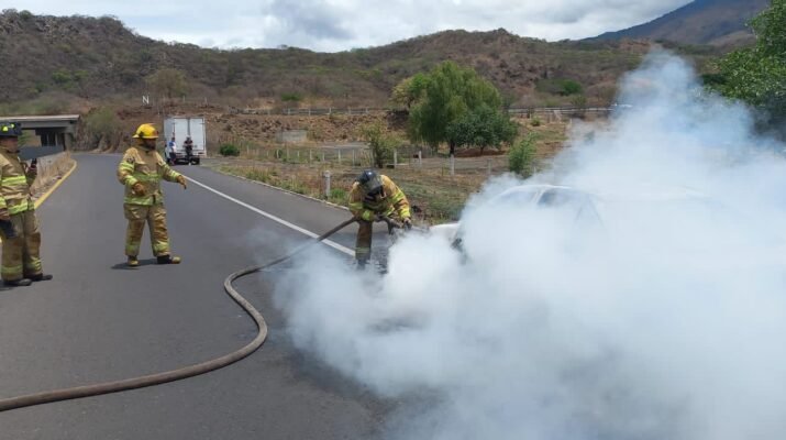 Se reportó un vehículo de la marca Volkswagen, tipo Jetta en siniestro total por la carretera Federal 15 kilómetro 154, acudiendo personal de bomberos del estado de la base de Ixtlán del Río.