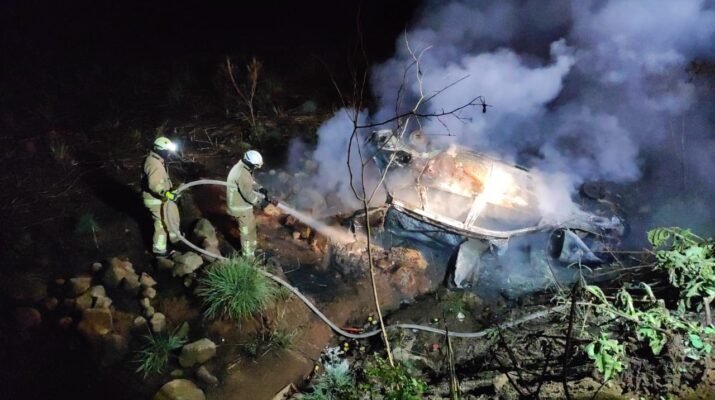 El domingo por la madrugada a la altura de la localidad de la colonia 6 de Enero en el municipio de Tepic, sobre el tramo carretero se registró un hecho de tránsito «salida de camino, volcadura e incendio de un vehículo».