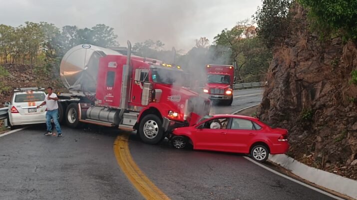 En el lugar del incidente, se encontró un camión tipo tráiler de la marca Kenworth y un vehículo de la marca Volkswagen en color rojo.
