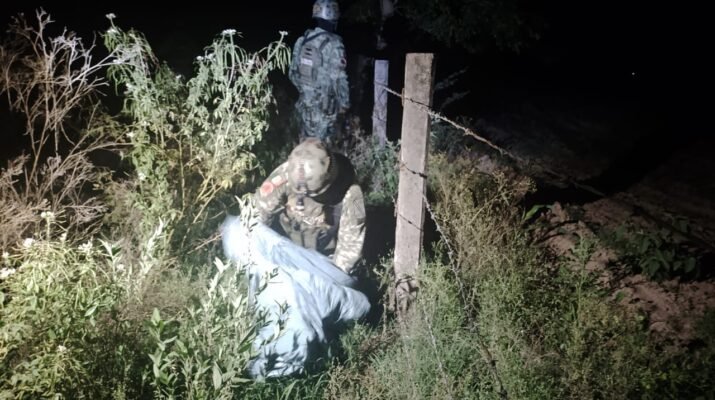 Los elementos castrenses procedieron a circular por dicho camino, donde localizaron una bolsa abandonada, misma que al ser inspeccionada contenía en su interior: 25 bolsas de plástico con un peso aproximado de 670 gramos de aparente marihuana, 16 bolsas de plástico con un peso aproximado de 402 gramos de aparente marihuana, cuatro bolsas de plástico con un peso aproximado de 113 gramos de aparente marihuana, 60 bolsas de plástico con un peso aproximado de 32 gramos de aparente cristal y 19 pipas de cristal.