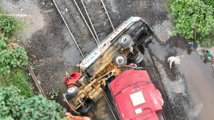 Se reportó una colisión ferroviaria en el cruce de las vías de la calle 21 de Febrero y Calle Guadalajara a la Colonia Tierra y Libertad, donde se ve involucrada una pipa de transporte de agua y la locomotora del tren, acudiendo al lugar personal de la Policía Municipal de Tepic, Policía Estatal quien atendió el reporte de accidente ferroviario.