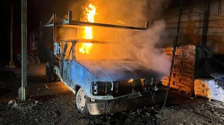 La Secretaría de Seguridad y Protección Ciudadana a través de los Bomberos de Nayarit sofocan el incendio de una camioneta en la carretera Guadalupe Victoria – San Blas, sobre el kilómetro 16, como referencia a la altura de la ferretería “Materiales del Pacífico”.