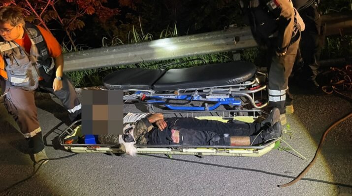 Atiende SSPC a través de Bomberos de Nayarit y la Policía Estatal hecho de tránsito de motocicleta en la carretera autopista Tepic- San Blas a la altura del kilómetro 11 como referencia aún costada del ojo del cielo.