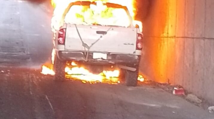 La tarde de este viernes, se reportó al 911 el incendio de una camioneta en la entrada a la ciudad de Tepic, en el km 0, bajo el puente de la avenida Insurgentes.
