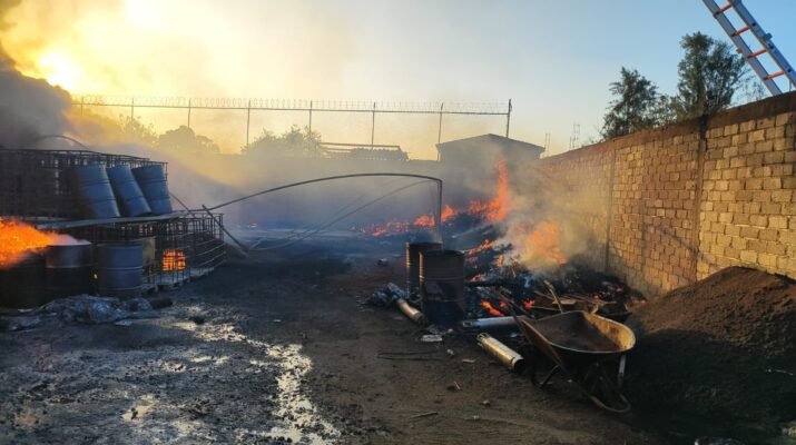 Al arribar al lugar, se encontró una bodega de aceites reciclados en siniestro, misma que contaba con tambos que almacenaban aceite, de manera inmediata se realizaron las acciones necesarias para enfriar los tambos durante un lapso seguro.