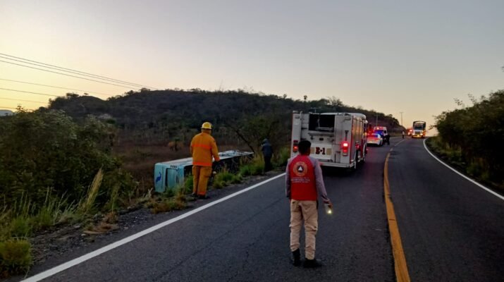 Bomberos de Nayarit, Guardia Nacional y Protección Civil de Rosamorada, Tecuala y Acaponeta respondieron a un reporte de volcadura de un autobús de pasajeros que ocurrió en Acaponeta. El autobús, que había salido de Cruz de Lota, Sinaloa, con destino a Guerrero, volcó en la carretera Federal 15, específicamente en el kilómetro 115, cerca del poblado de San Miguel, en el municipio de Acaponeta.