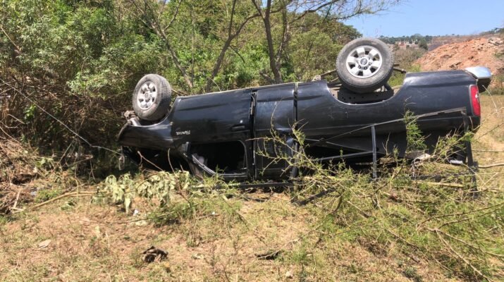 Paramédicos de la Unidad Médica Táctica de la Policía Estatal tomaron conocimiento del hecho y se dirigieron al lugar señalado, donde se encontró una camioneta de la marca Nissan, submarca Frontier, en color negro, volcada en un barranco.