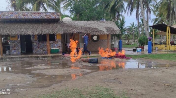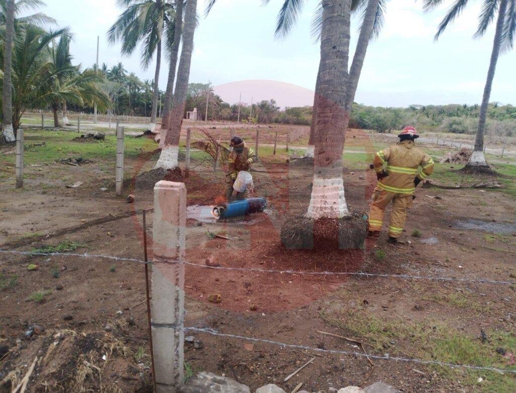 Bomberos de Nayarit tomaron conocimiento del reporte y se dirigeron al lugar señalado, dónde se encontraron dos tanques de treinta kilos al exterior del restaurante, tirados de manera horizontal sobre el suelo, con la presencia de fuego activa.