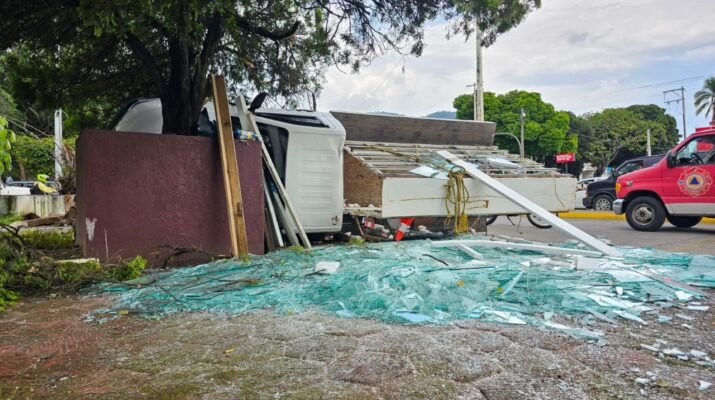 Volcadura en el Parque Juan EscutiaElementos de Protección Civil y Bomberos de Tepic, atendieron el reporte de volcadura en la avenida Juan Escutia, a la altura del Parque, que dejó como saldo daños materiales.Al llegar el personal, se entrevistaron con el conductor, el cual refiere que circulaba sobre la avenida Allende y al intentar incorporarse hacia la avenida Juan Escutia, el peso de la carga -cristales-, provocó que terminara volcándose.Asimismo, al revisar a ambos ocupantes se confirmó que resultaron ilesos.