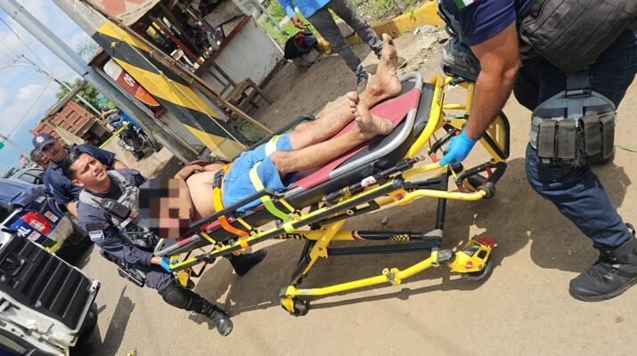 Elementos de la Unidad Médica Táctica de la Policía Estatal brindan atención oportuna a un masculino que sufrió una descarga eléctrica en la carretera Federal 15 Tepic – Guadalajara, a la altura del fraccionamiento Bonaterra, en la capital nayarita.