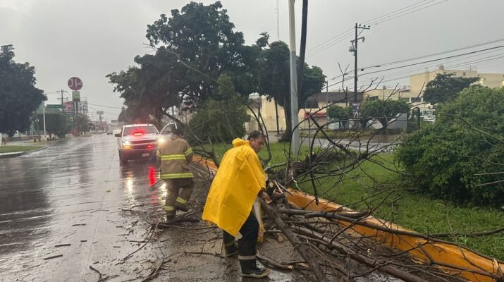 CN1 Personal de Protección Ciudadana y Bomberos, se encuentra dando recorridos preventivos en la ciudad retirando árboles caídos. Se exhorta a la ciudadanía a