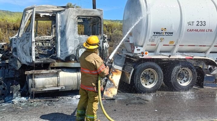 Sofocan Bomberos de Nayarit el incendio de una pipa en la carretera Federal 15