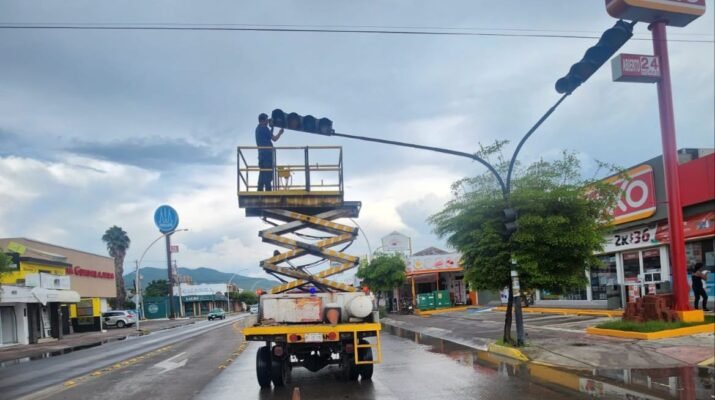Rápida reacción del Gobierno de Tepic para reparar semáforos tras intensas lluvias