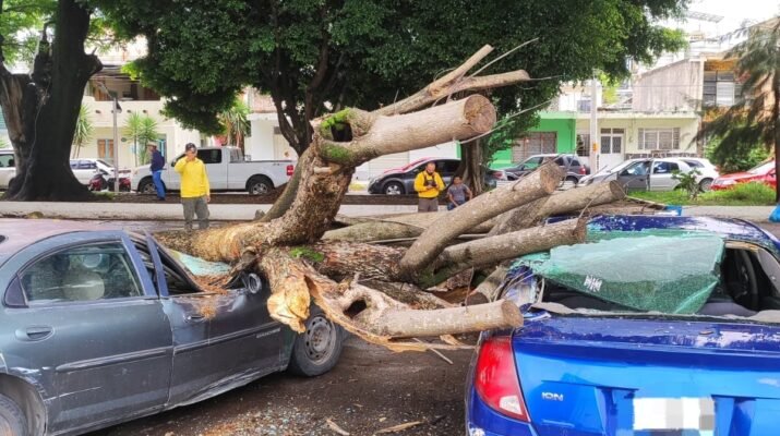 Bomberos de Nayarit se encuentran atendiendo el reporte de un árbol que cayera sobre dos vehículos en la avenida Calzado del Panteón, de la