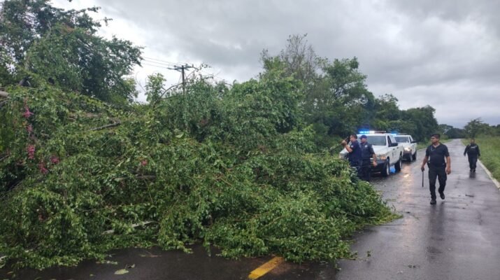 Con apoyo de la @SSPCNay, @SCT, @SEDENA y autoridades municipales, realizan trabajos de rehabilitación de caminos por obstrucción de árboles caídos en los municipios